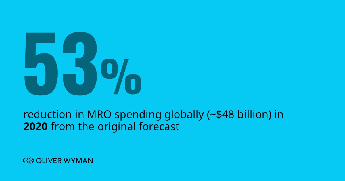- The revised 2020 MRO spend is expected to come in at around $43 billion, a little less than half of the estimated 2019 demand and 53 percent lower than the $91 billion originally anticipated this year. Over the next 10 years, we expect spending to be $173 billion lower than originally forecast.