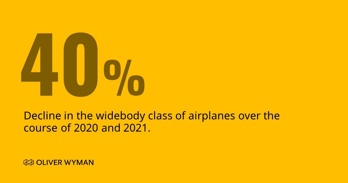 - A 45 percent decline in 2020 narrowbody and widebody aircraft production from 2019 is now expected with the number of units down by 560. The production is also 53 percent lower than our pre-COVID estimates. That represents 762 units fewer aircraft.