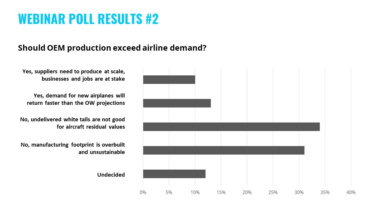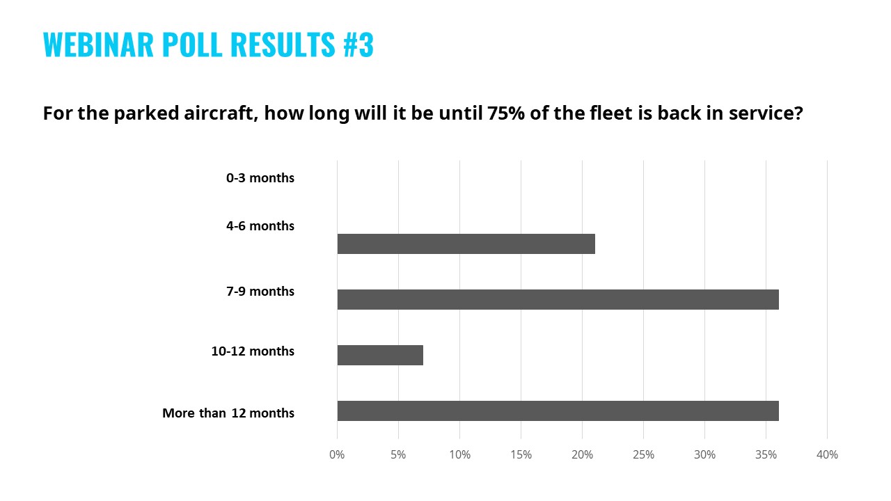 Moderated by Tom Cooper, the webinar presented perspectives on how COVID-19 will alter short and long-term outlooks for demand and traffic, fleet growth and aerospace production, and aftermarket activity. Oliver Wyman’s Khalid Usman, Ken Aso, and Brian Prentice each led one of the three sections, respectively.