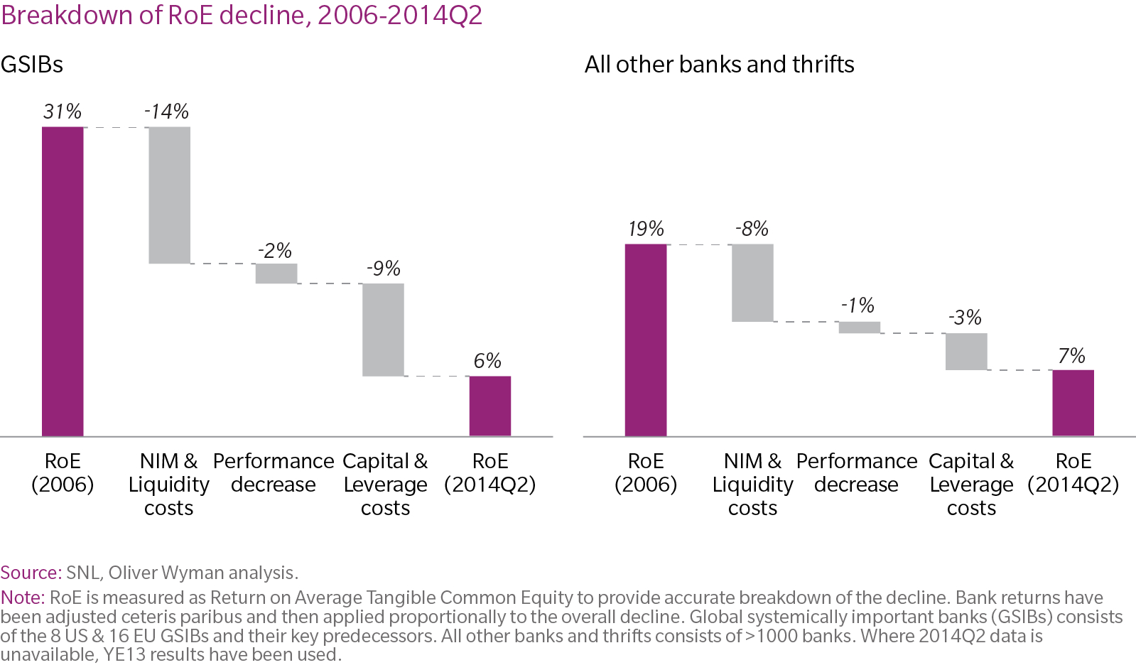 - Returns of the 8 American and 16 European banks designated GSIBs (global systemically important banks) have declined by 70% since 2006
