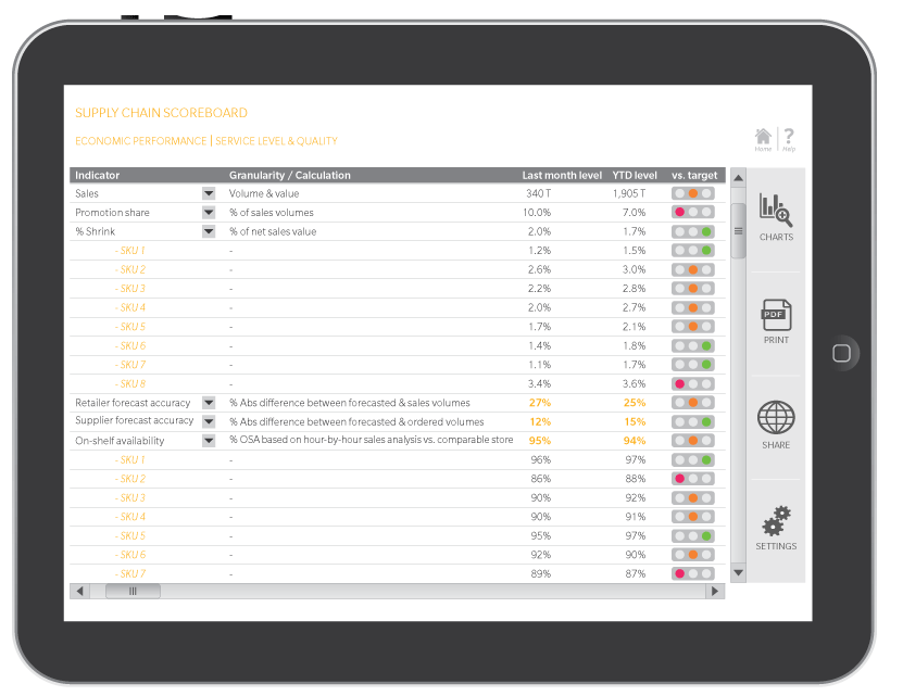 An illustrative screenshot of a supply chain scoreboard to support data sharing