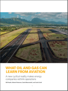 Oil and gas executives are reacting appropriately to this new normal, seeking ways to maintain tighter reins on an industry that has always functioned like a federation of very independent states. While some of the larger industry members provide models for improving performance, the oil and gas industry also may want to consider reshaping some of its operations around a historcally cyclical and volatile, asset-intensive industry with far tighter profit margins – the aviation industry.