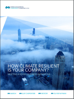 This paper draws on the combined expertise of Marsh, Guy Carpenter, Mercer, and Oliver Wyman, and is designed to help your company answer the question “are you climate resilient?” We hope you find it useful and informative.