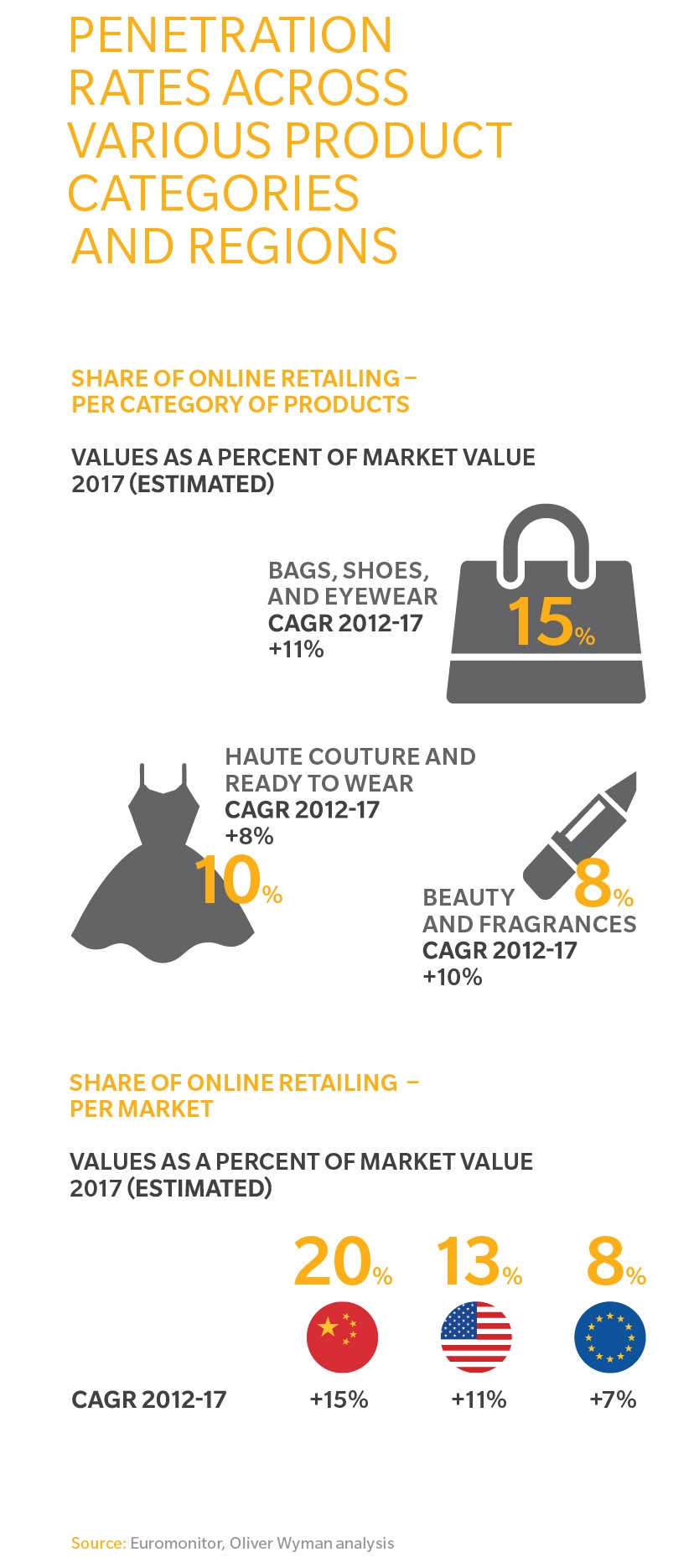 E-COMMERCE PENETRATION IN LUXURY BRANDS HAS INCREASED SLOWLY UNTIL RECENTLY