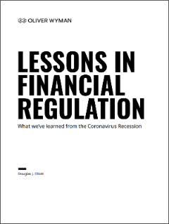 Douglas Elliott is an Oliver Wyman partner focused on the intersection of Finance and public policy. He is the author of the book, Uncle Sam in Pinstripes: Evaluating US Federal Credit Programs. Prior to his current position, he was a scholar at the Brookings Institution and a Visiting Scholar at the IMF. Before that, he was the founder and principal researcher for the Center On Federal Financial Institutions. He began his career with two decades as an investment banker, primarily at JP Morgan.