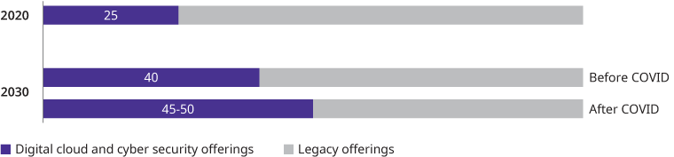 Based on our models, the COVID-19 fallout will turbocharge the evolution of IT services. In fact, chances are turnaround will happen even faster this time. IT services have seen a remarkable shift in demand in the last few years, with an ever-increasing share of digital, cloud, and cyber security offerings overegacy infrastructure and application services.
