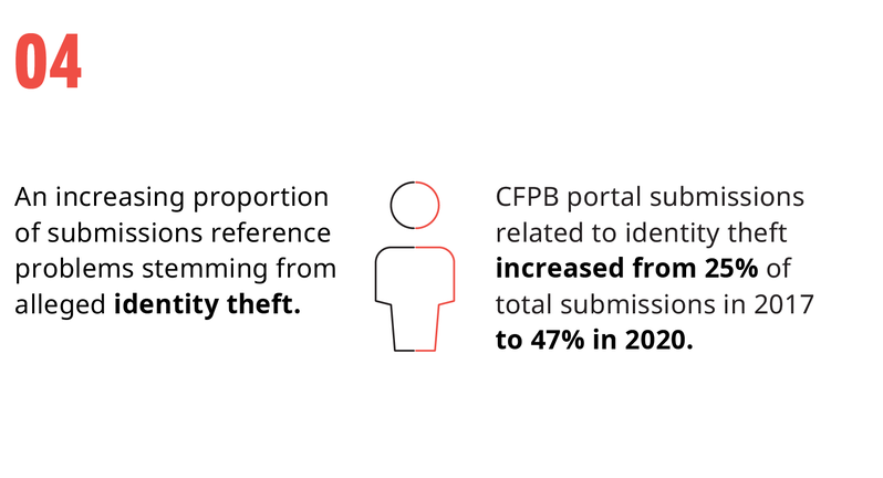 This analysis is conducted with submissions data that the NCRAs received from the CFPB portal, augmented with the NCRAs’ own internal data from processing submissions for the period of 2017 to 2020.