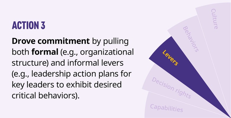 Many transformations take on a business-led view. However, culture-led transformations are much more sustainable and are driven by evolving an organization’s behaviors. Leaders can spend resources on the most innovative, expensive technology, but if they do not retool their workforce or change how the work is performed, they will be challenged to sustain the returns originally envisioned.