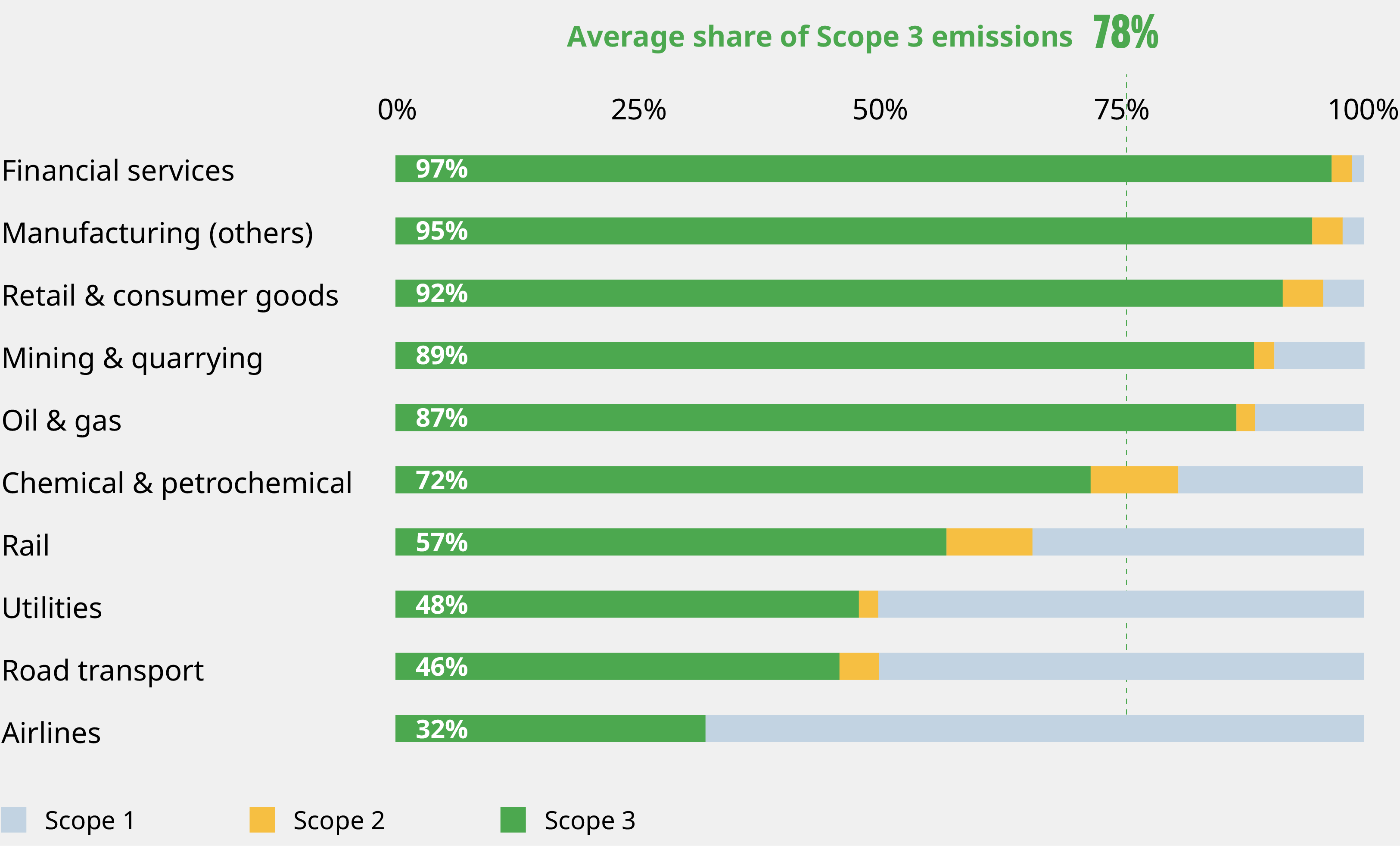 Retail and consumer goods companies are close to the highest when it comes to Scope 3 emissions as a percentage of total emissions.