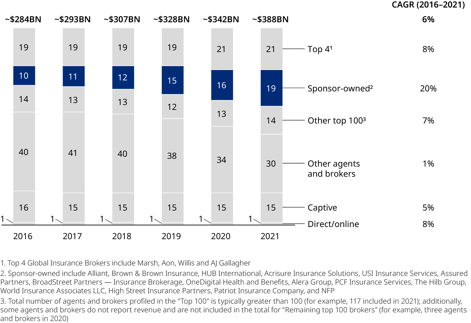 Sponsor-backed insurance brokers now account for more than half of the top 30 brokers in the US across commercial, personal, and employee benefits (EB) lines