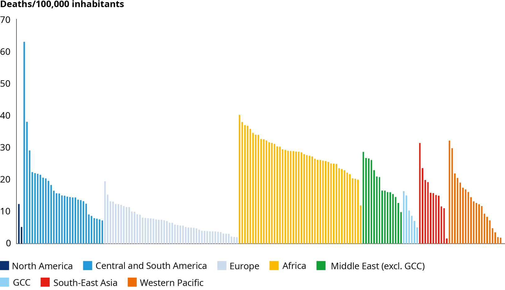 - Countries with high initial mortality rates (of above 10 per 100,000 inhabitants) that apply particularly effective programs with rapid results.