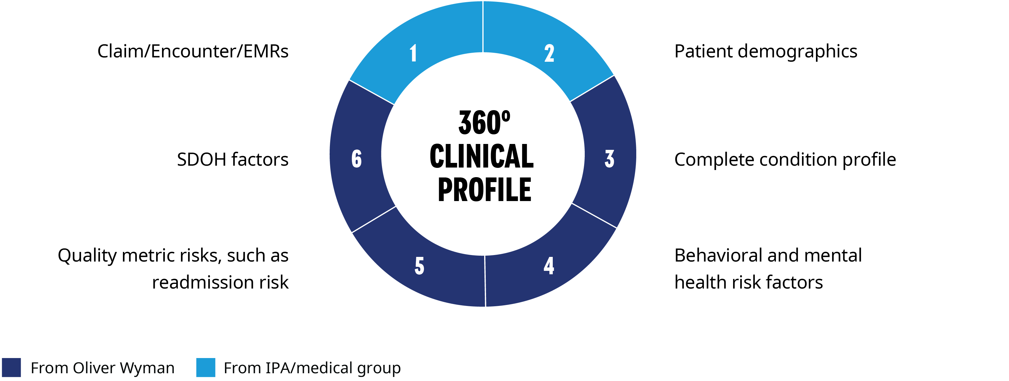 Oliver Wyman has created a team that has combined its market and industry knowledge with its data and analytics capabilities to partner with IPAs and medical groups. This Predictive Insights group can help you better understand patient panels and manage the financial risks and opportunities related to VBC. The key to this process is Oliver Wyman’s best practice approach to problem solving, which combines descriptive and predictive analytics to create strategic solutions to address the needs of our clients.