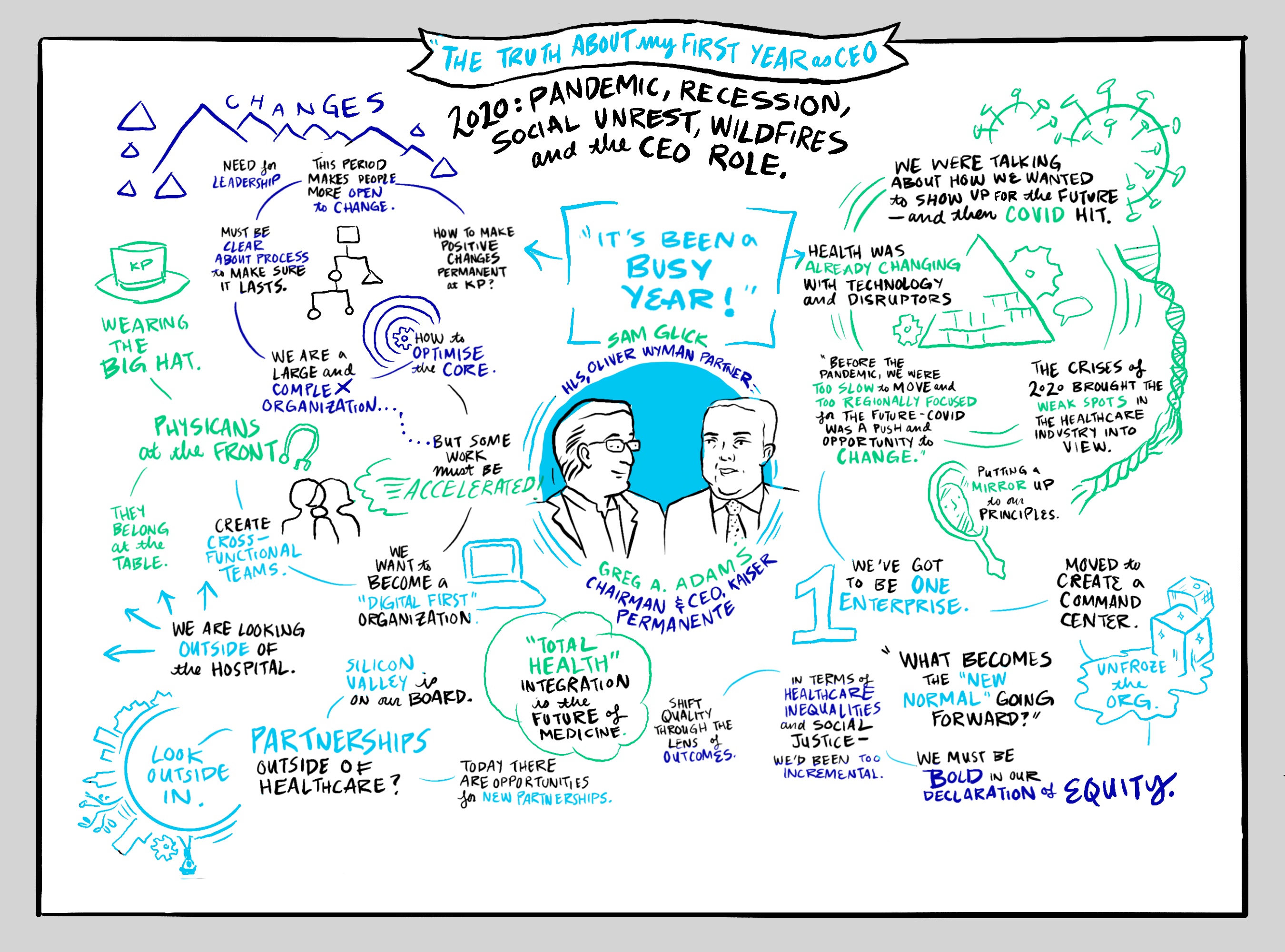 2020 brought on a pandemic, an economic recession, social unrest, wildfires, and a contentious US presidential election. Greg A. Adams, Chairman and CEO of Kaiser Permanente, has faced all of these challenges in his first year leading the company. What has he learned and what can we all learn from him as we lead through the uncertainty that lies ahead?