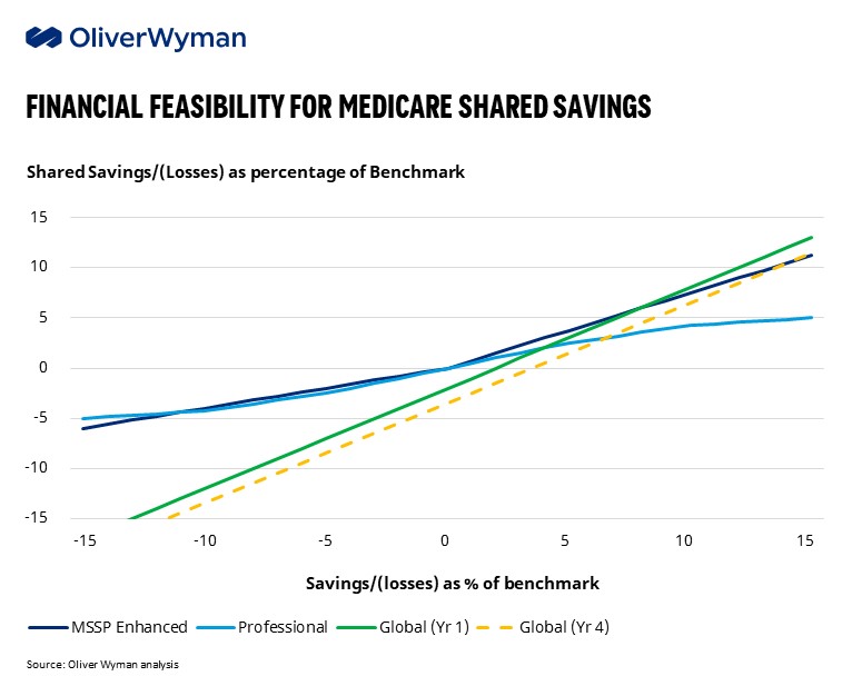 Major trade-offs remain for those considering ACO REACH versus MSSP Enhanced Track. Two factors will bear heavily on this decision. First is understanding how the ACO’s starting benchmark is impacted by its historical performance relative to the region (via the MA rate book). Second is the ACO’s expected ability to reduce total cost of care, recognizing that REACH offers an additional powerful lever of contracting with downstream providers and ancillaries. ACOs expecting to drive more than 7% reductions in TCOC in the first few years and more than 12% in the outyears will benefit more from ACO REACH. For those concerned about the high hurdle rate in REACH, there is also an option to start in REACH’s Professional track and shift into Global within two years. Beneath these top considerations, ACOs should consider the added administrative cost inherent in REACH, role of voluntary alignment in driving growth, impact of regional trends on difficulty of success, opportunity for earning in the High Performers Pool, cashflow timing, and benefit allowances to reinforce clinical impacts on TCOC.